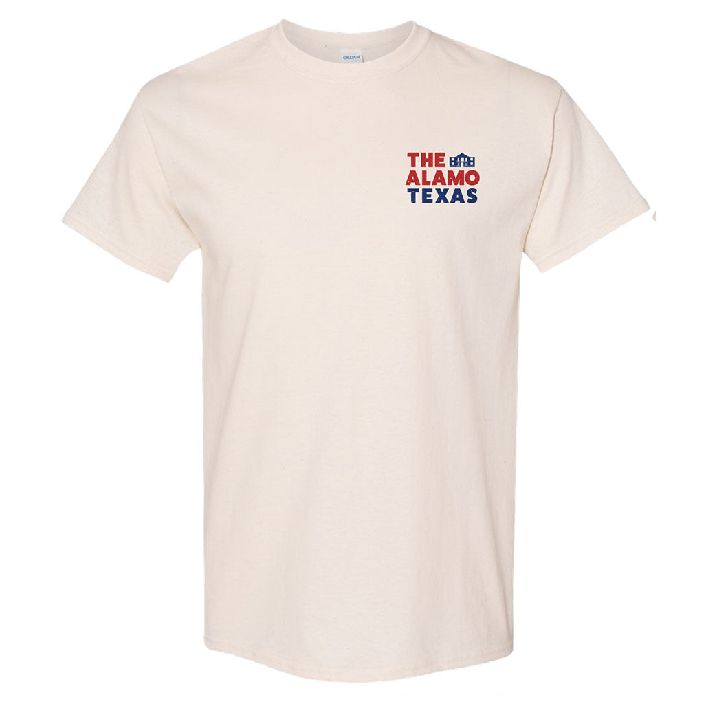 Stand tall and proud in The Alamo Flag T-Shirt. This patriotic t-shirt pays homage to one of the most legendary historical sites in American history, featuring the iconic Texas flag and the legendary The Alamo building in bold graphic designs.